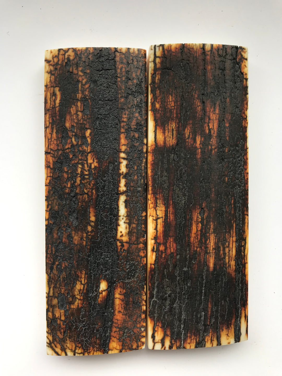 Diese Schuppenpaare sind aus echten sibirischen Stoßzähnen und Rindenstücken geschnitten.