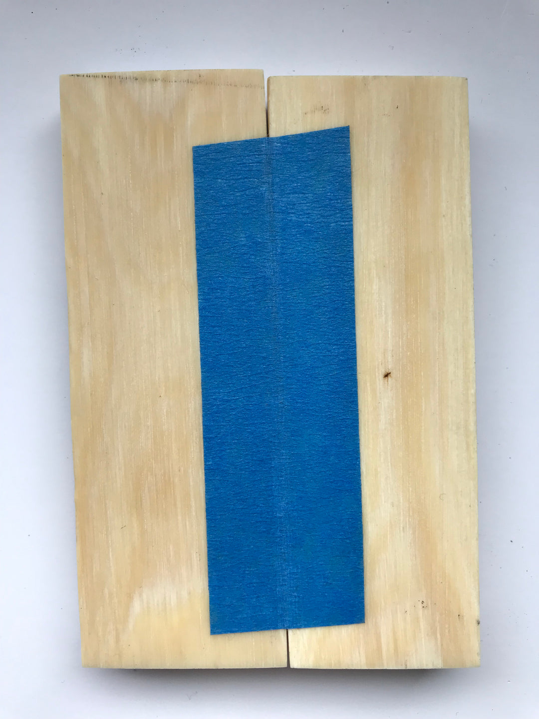 Bei den Stücken, die aus sehr hohlem Rohmaterial stammen, ist der Hohlraum auf der Rückseite normalerweise mit schwarzem Epoxidkleber gefüllt. - Einiges davon kann daher sichtbar sein, wenn die Skala von hinten betrachtet wird. - Normalerweise ist dies kein Problem für den Messermacher, da er normalerweise entweder die Enden hinter Polstern versteckt oder den Kleber abschleift, bevor er das Stück verwendet.