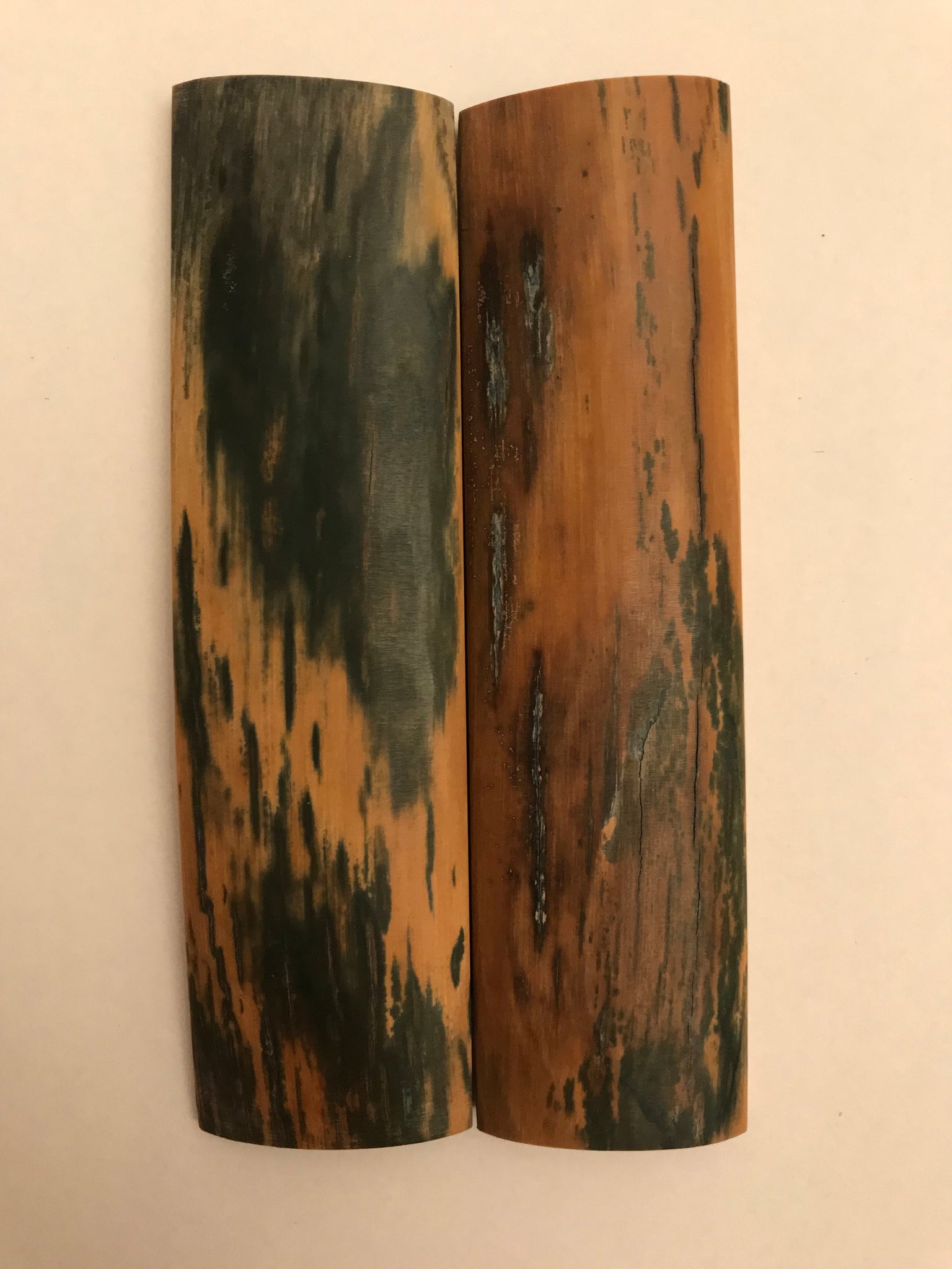 Ces paires d'écailles sont coupées à partir de véritables défenses et morceaux d'écorce de terre sibérienne.