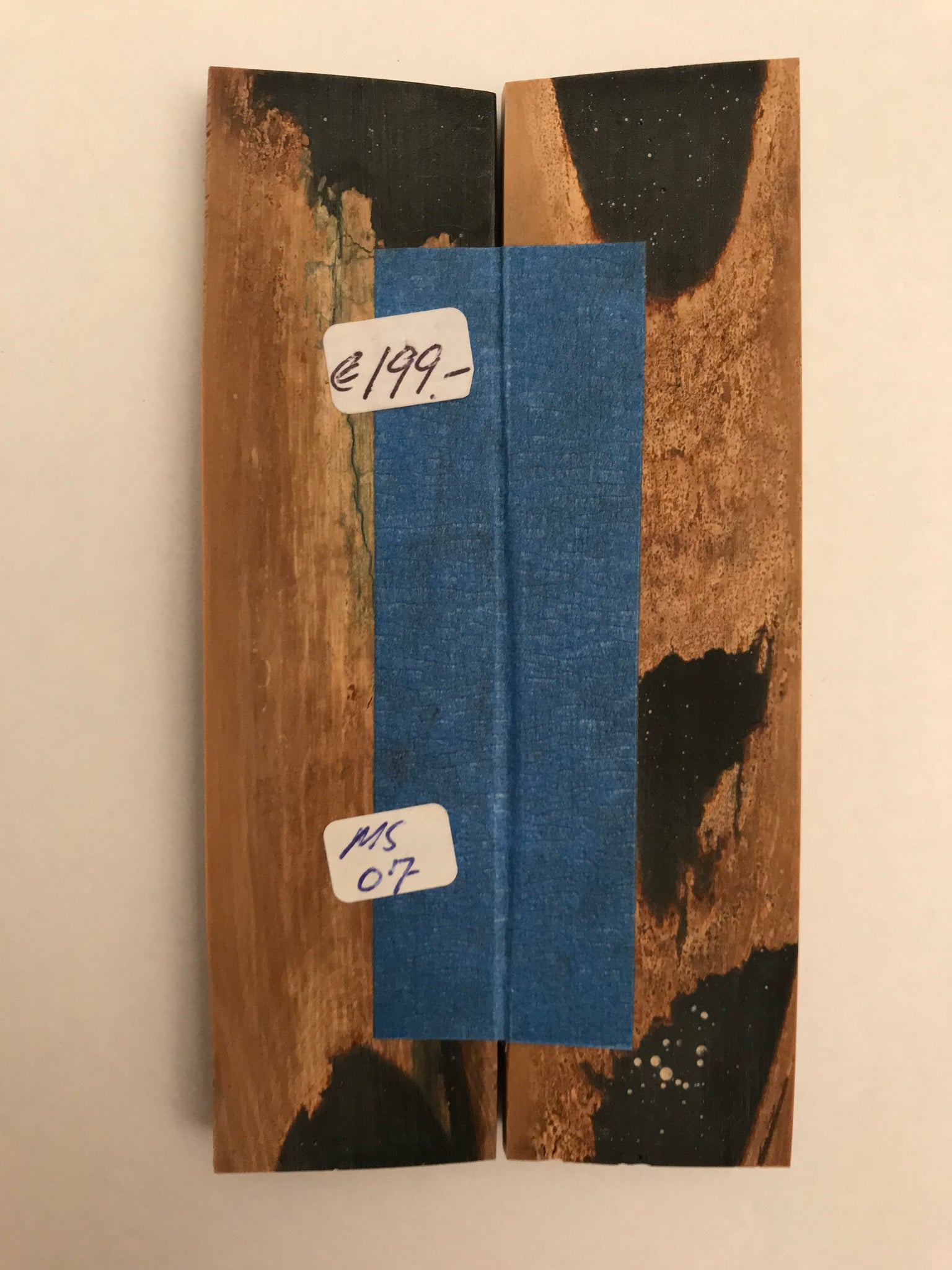 Les pièces qui proviennent de matières premières très creuses ont généralement leur cavité arrière remplie de colle époxy noire. - Une partie de cela peut donc être visible lorsque l'échelle est vue de l'extrémité. - Normalement, ce n'est pas un problème pour le coutelier car il cache généralement les extrémités derrière les traversins ou ponce la colle avant d'utiliser la pièce.