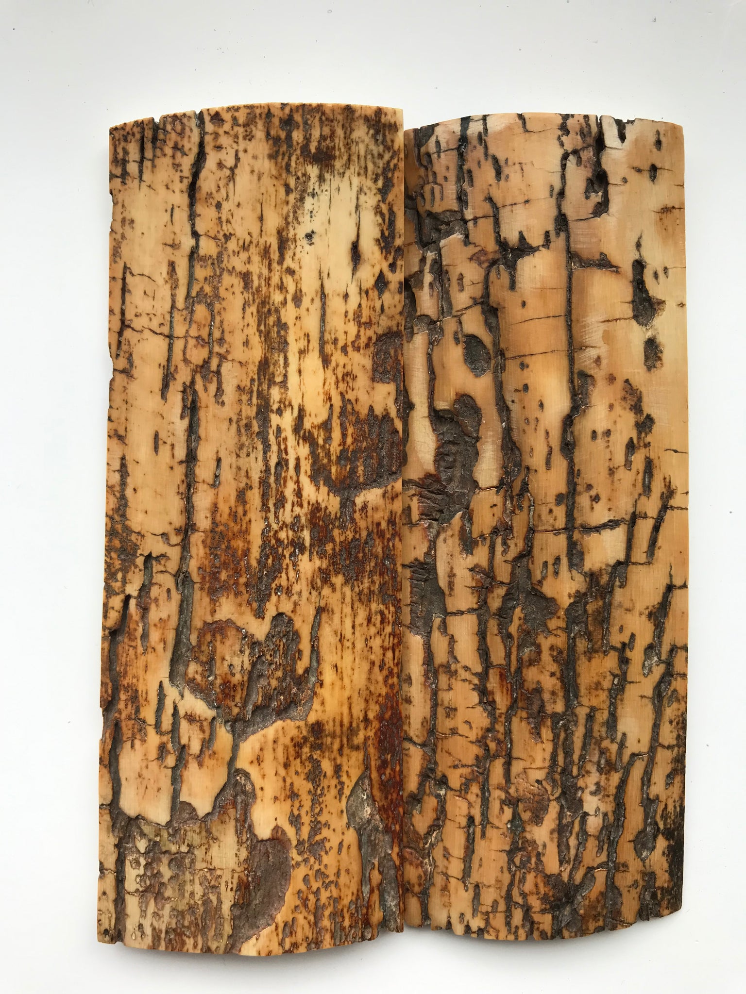 These scale pairs are cut from genuine Siberian earth found tusks and bark pieces.
